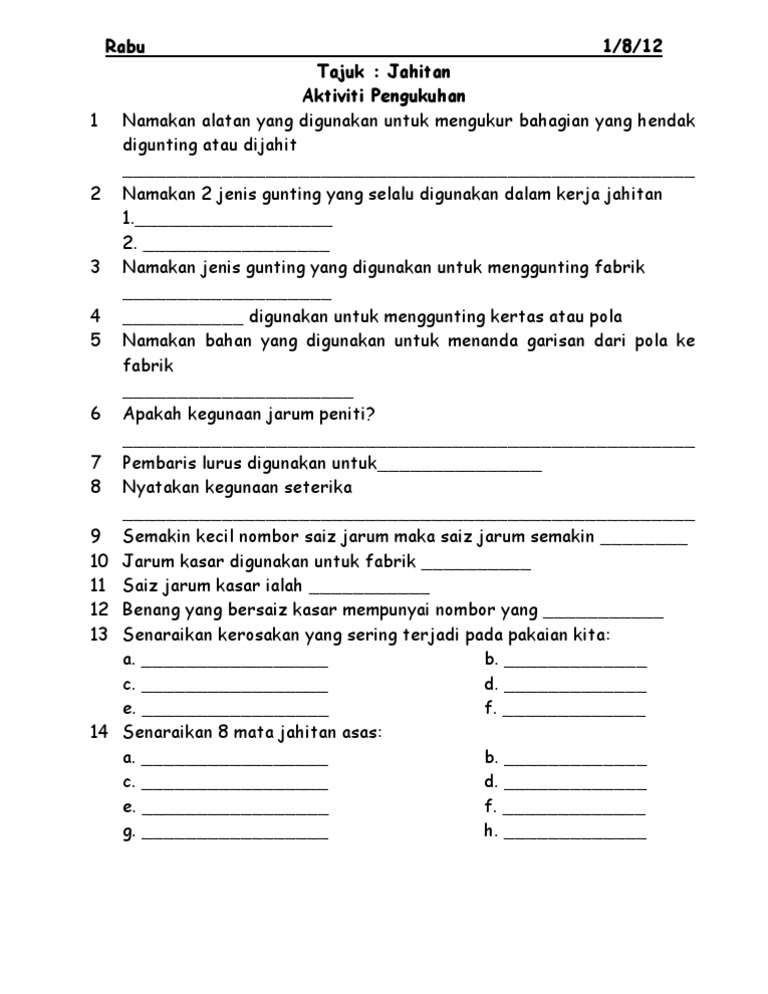 Soalan Peperiksaan Jahitan Pdf